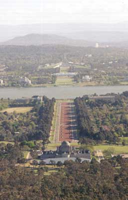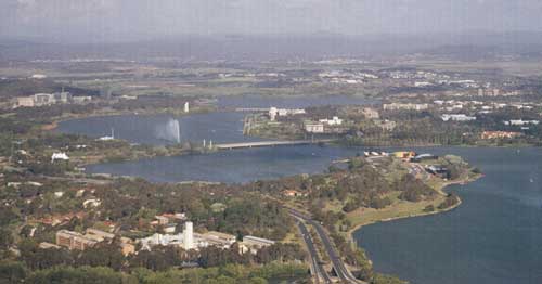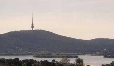 view of the parliament area of Canberra from atop Telstra