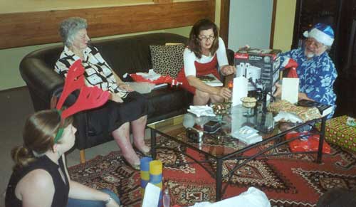 Opening presents with Peta's grandma and parents.