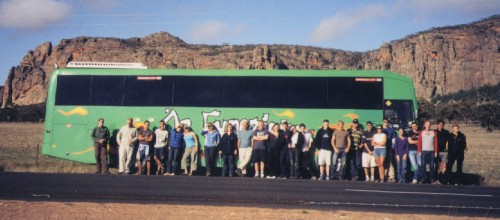 All of the Oz Experience passengers with Mt Arapiles behind.