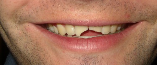 Missing some teeth there... Air hockey puck... Unbelievable...