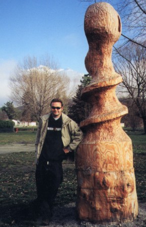 Weird sculpture with Mount Aspiring in the background.